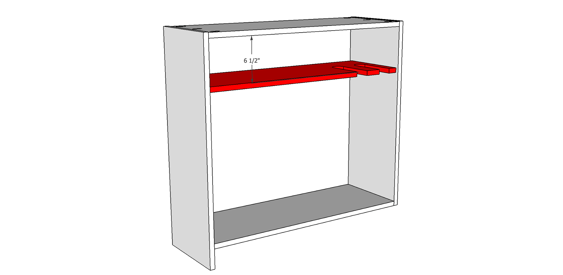 Finally, add an additional rail 1-1/2” above the lower rail. This will help to keep taller items in place as the door swings open and shut. Both rails can be attached using glue and clamps without needing any screws.