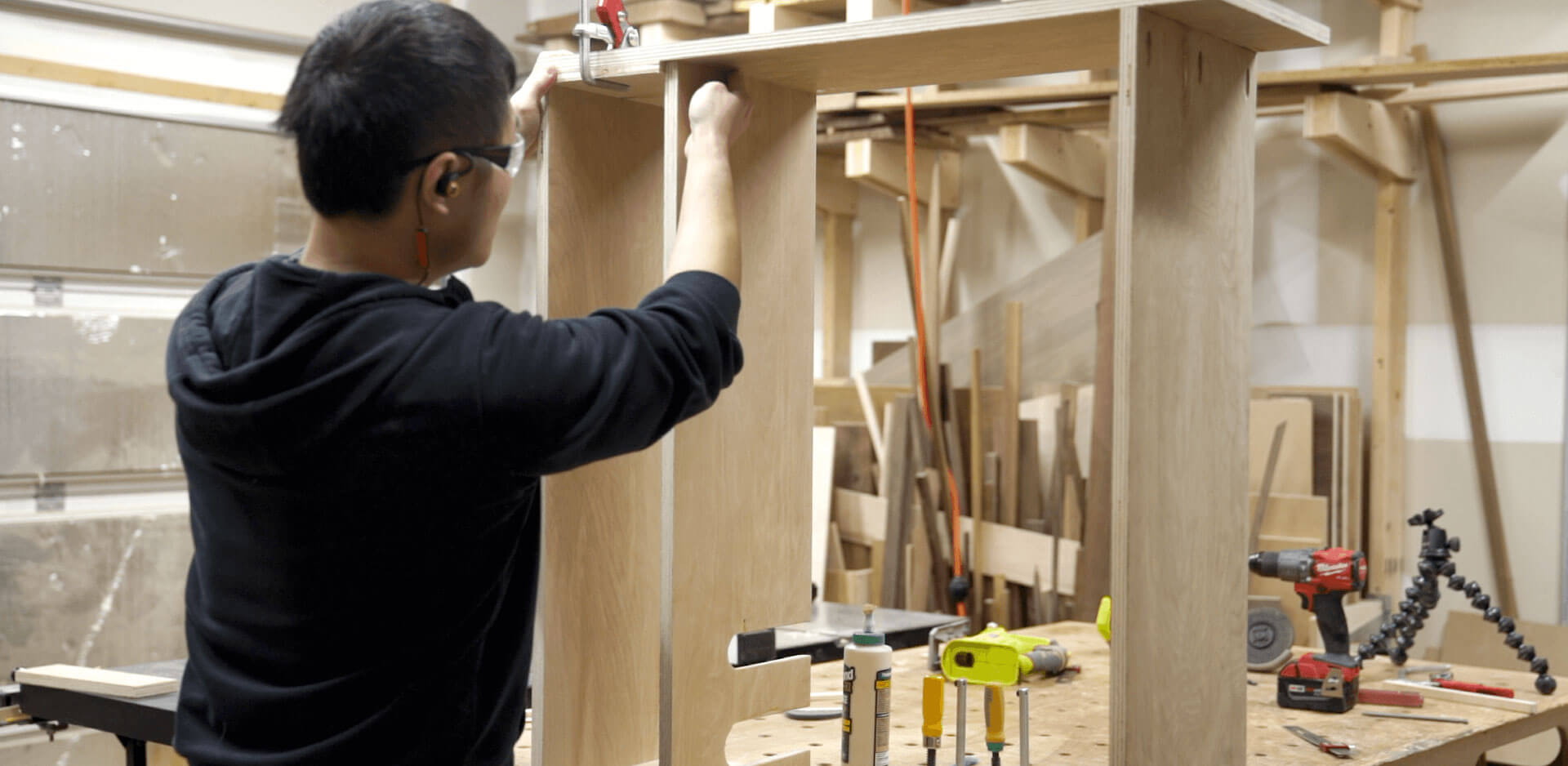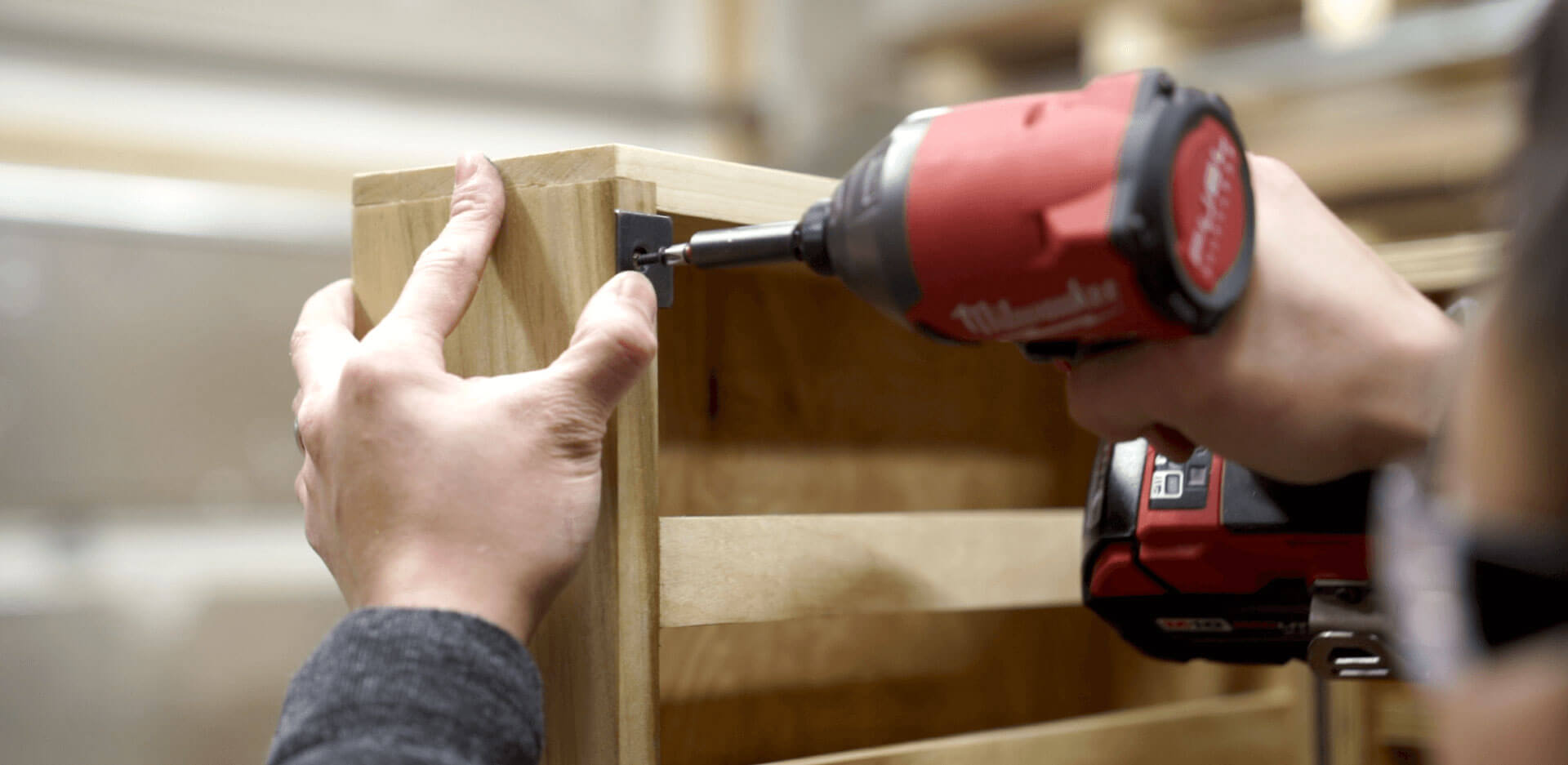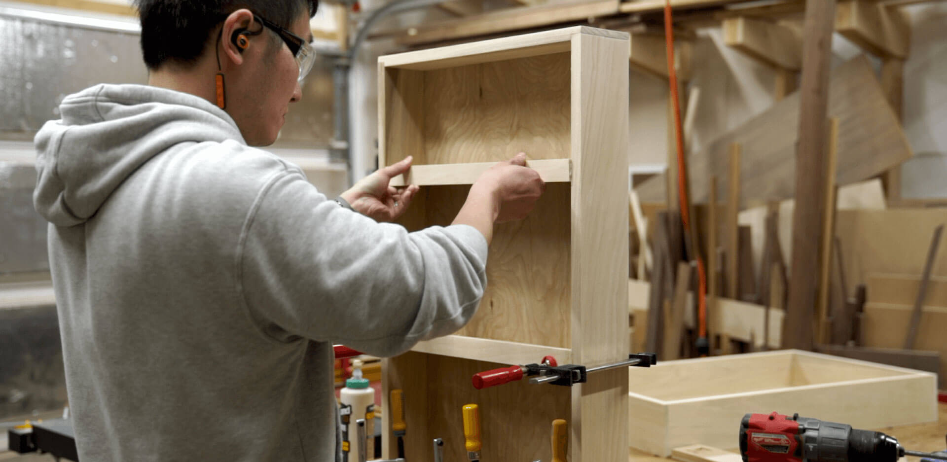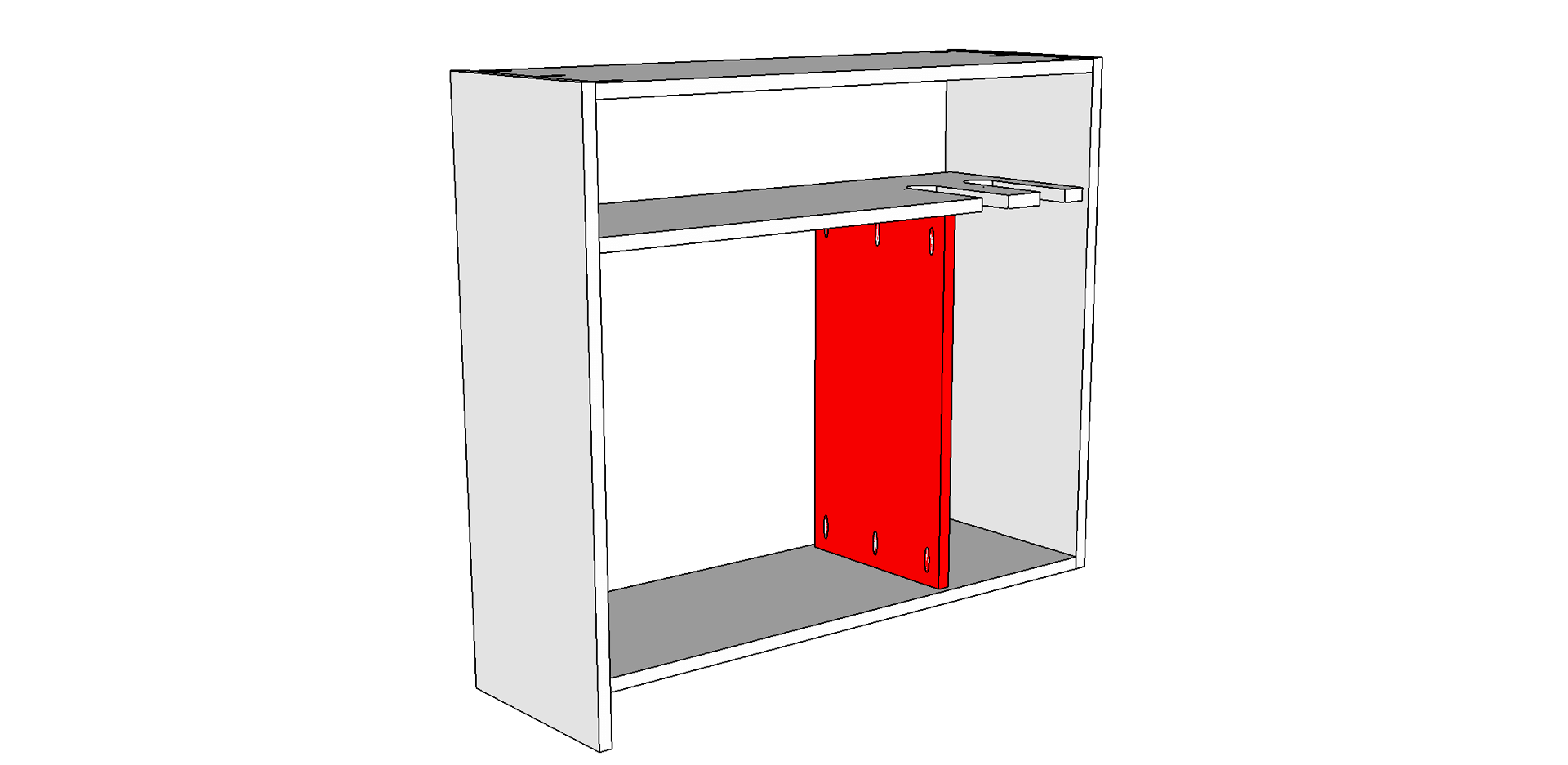 Finally, secure it to the bottom panel and the horizontal shelf using glue and screws.