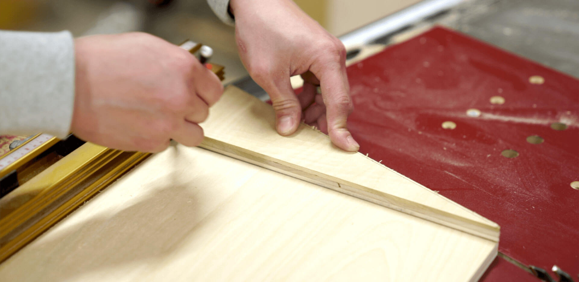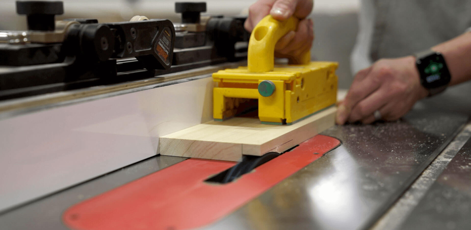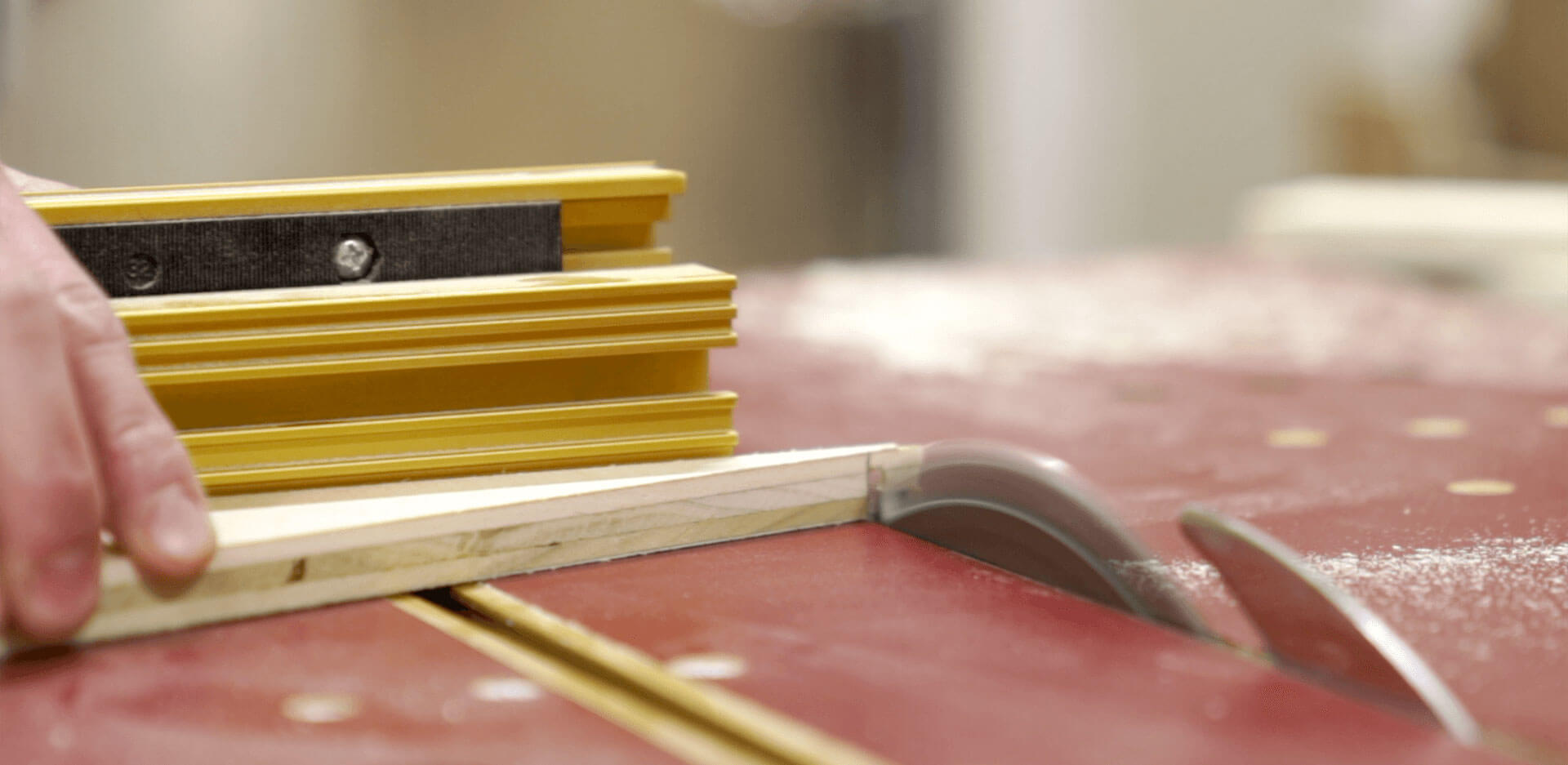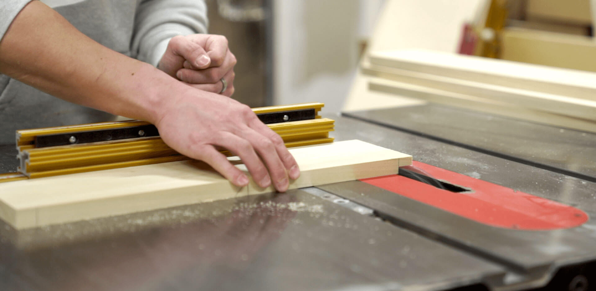 The stile and rails will be joined with a rabbet joint that’s cut into the two ends of the rails. Use the stiles to help layout where to cut the rabbet and cut with the miter gauge at the table saw.
