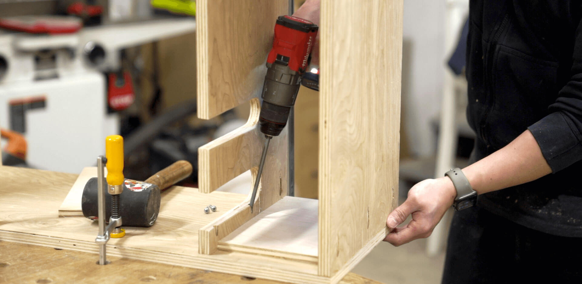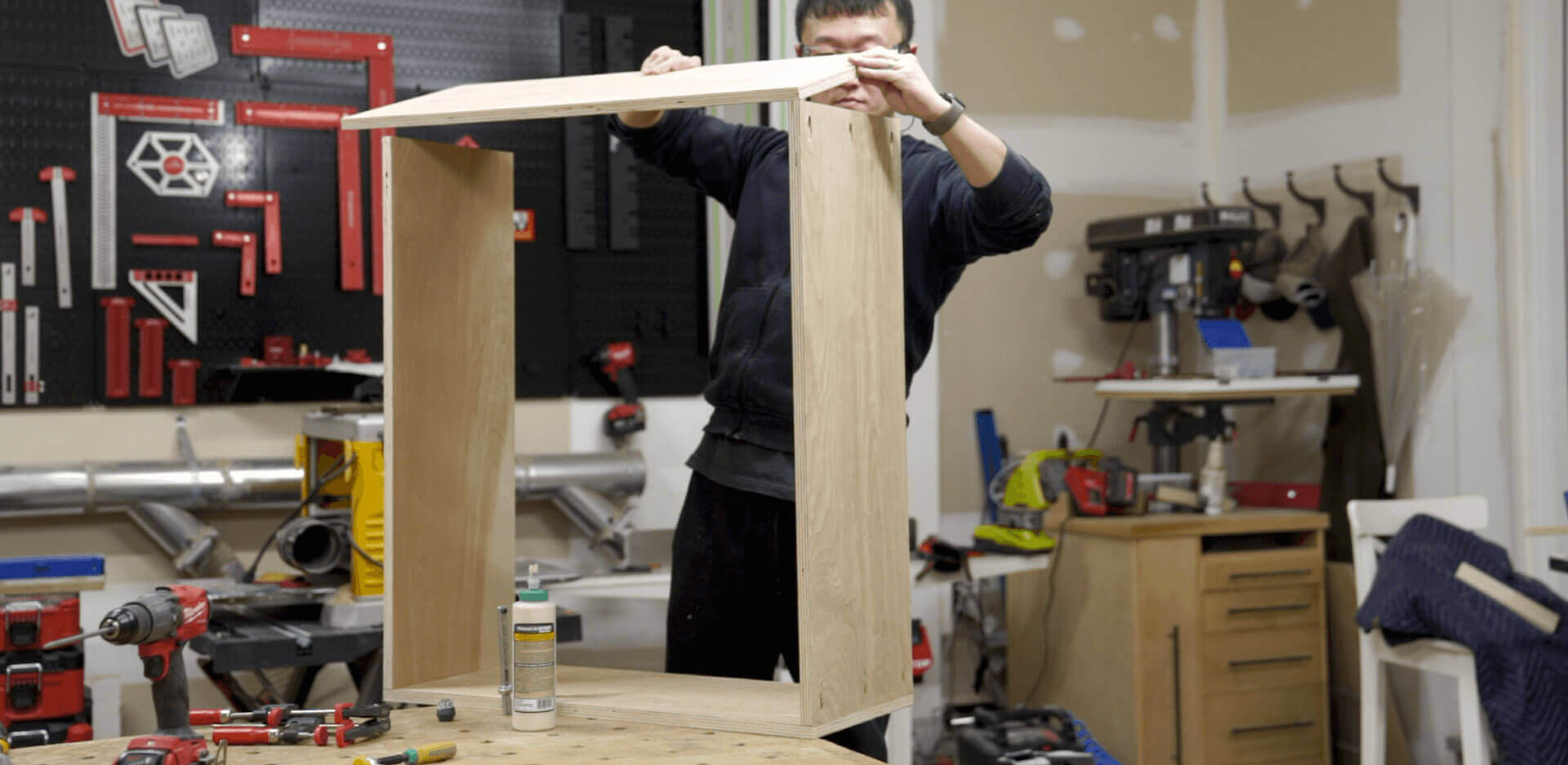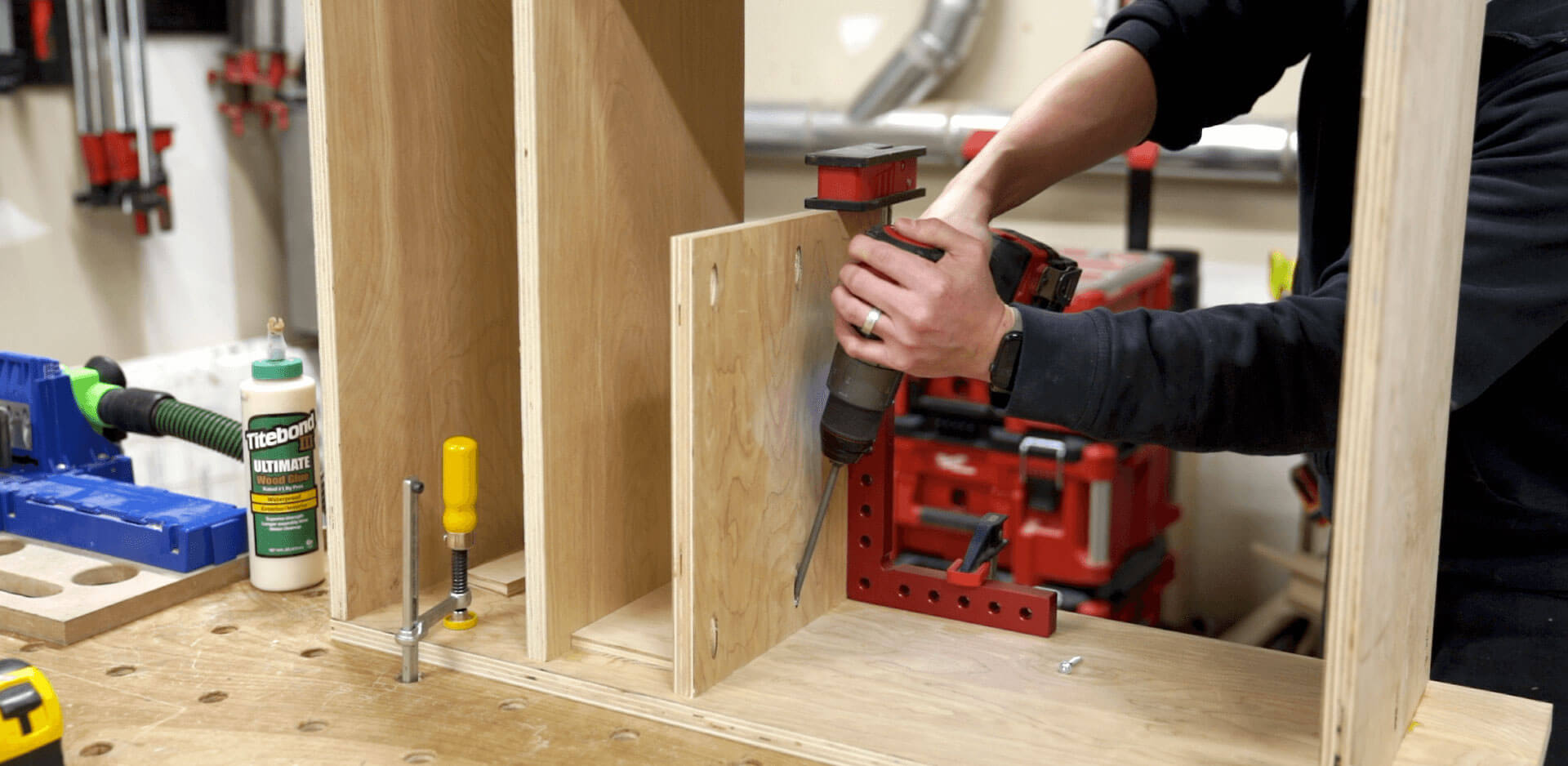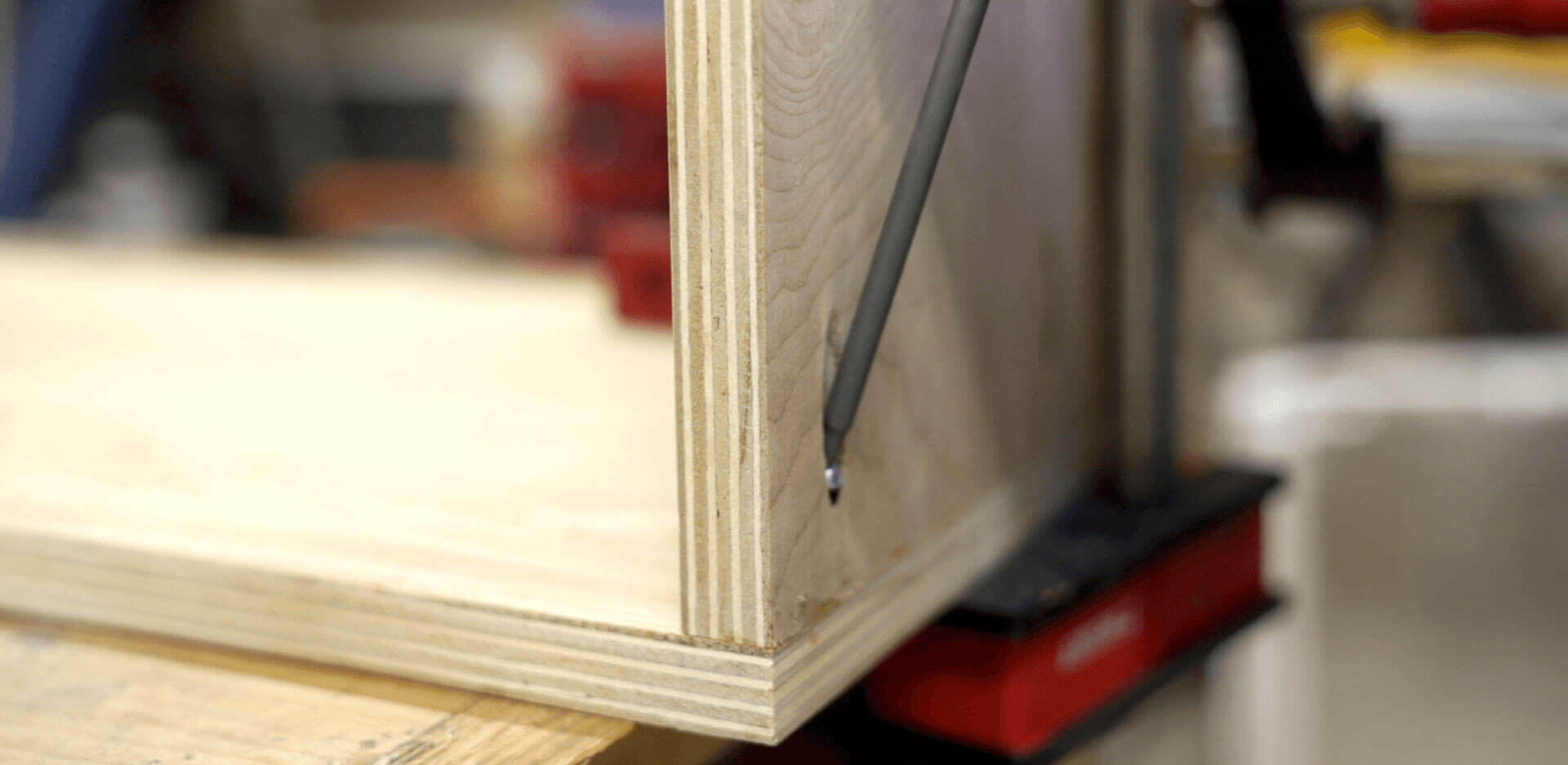 Usually, for my shop projects, I’m more interested in the functionality of the piece and getting it done than getting too bogged down in honing complex skills. That’s why I use pocket screws in this build. Feel free to use other joinery methods such as dados and rabbets instead of pocket screws. Those are very good skills to have and shop projects are a great time to practice.