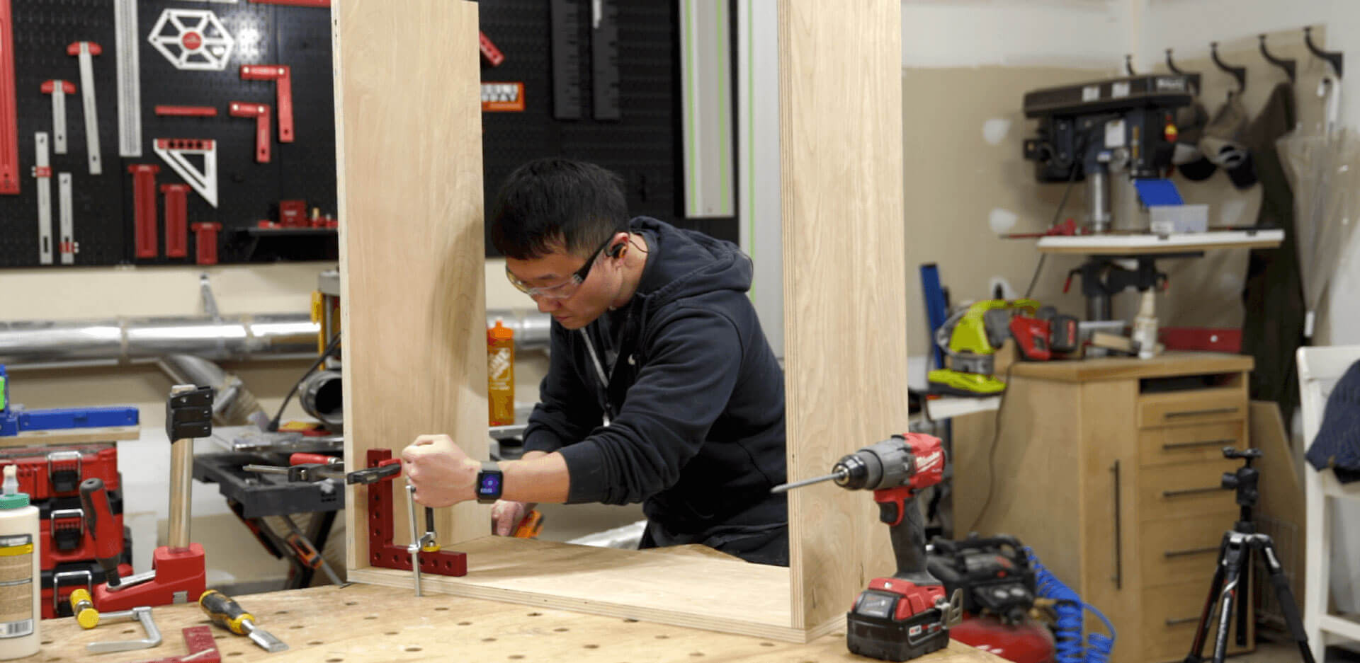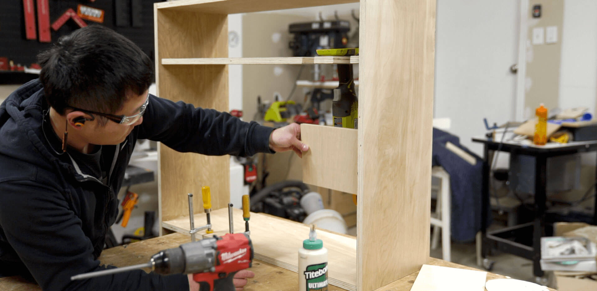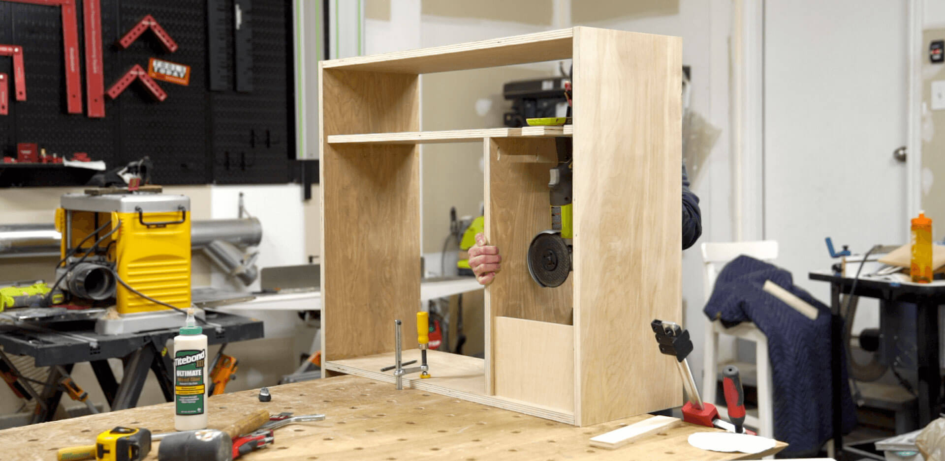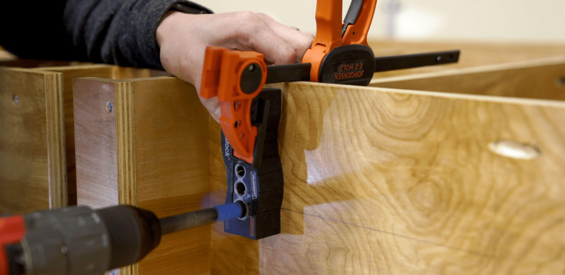 Usually, for my shop projects, I’m more interested in the functionality of the piece and getting it done than getting too bogged down in honing complex skills. That’s why I use pocket screws in this build. Feel free to use other joinery methods such as dados and rabbets instead of pocket screws. Those are very good skills to have and shop projects are a great time to practice.