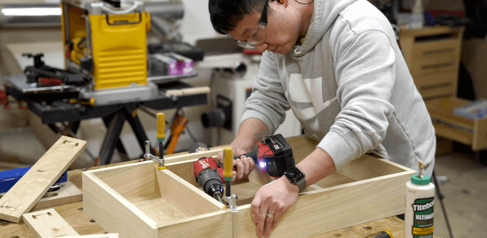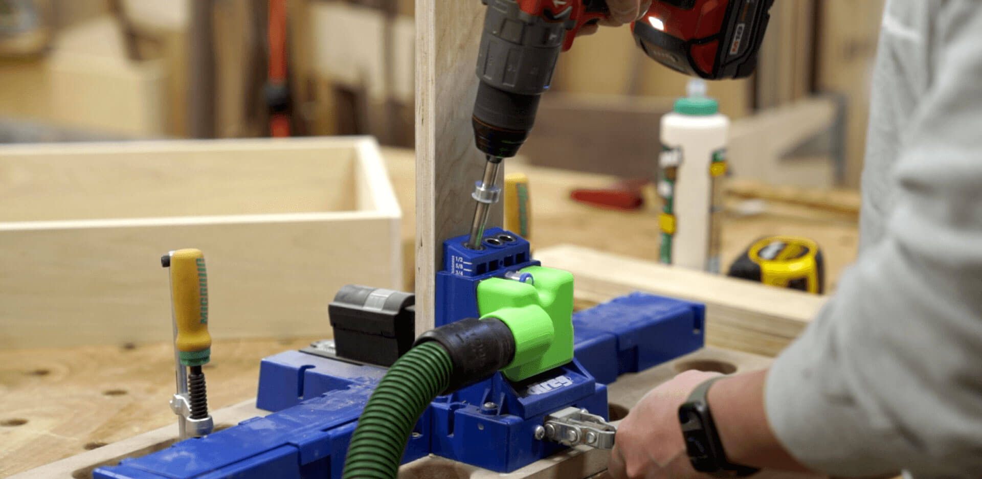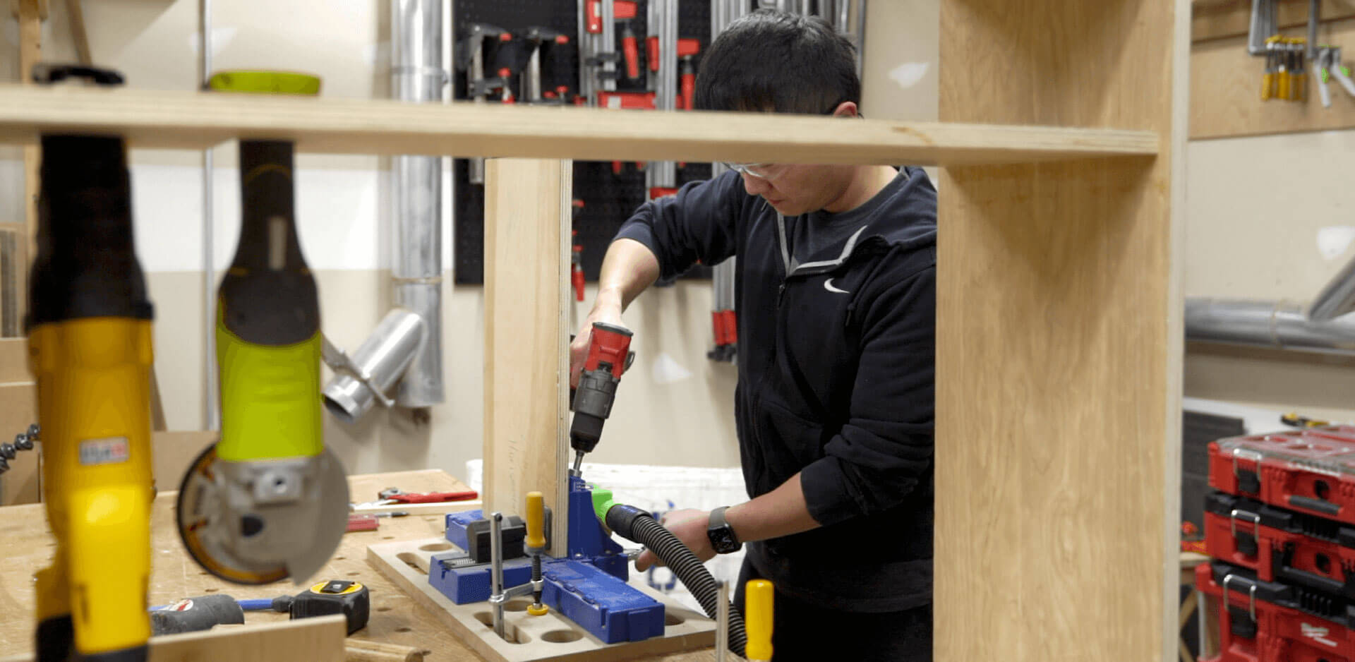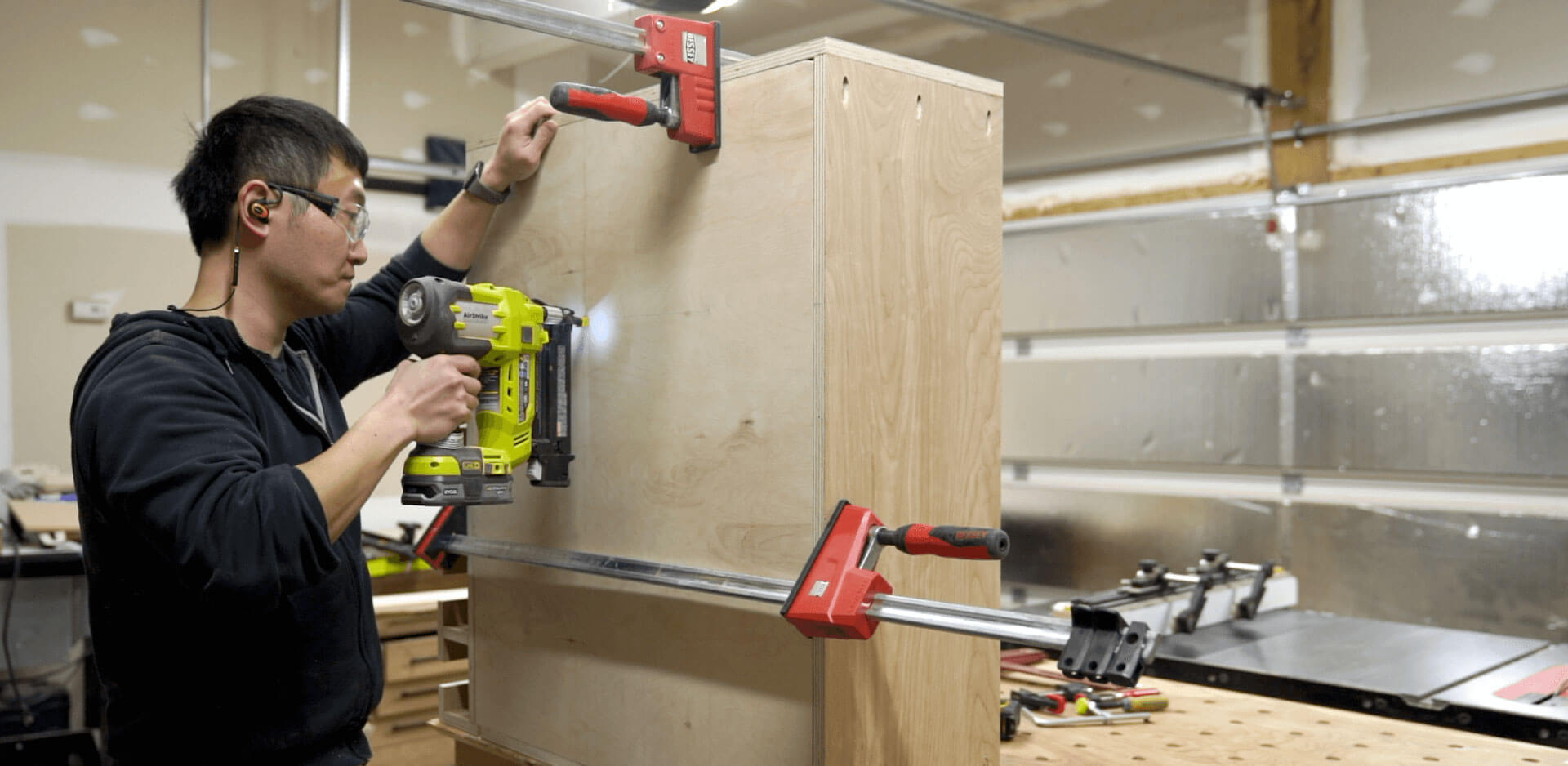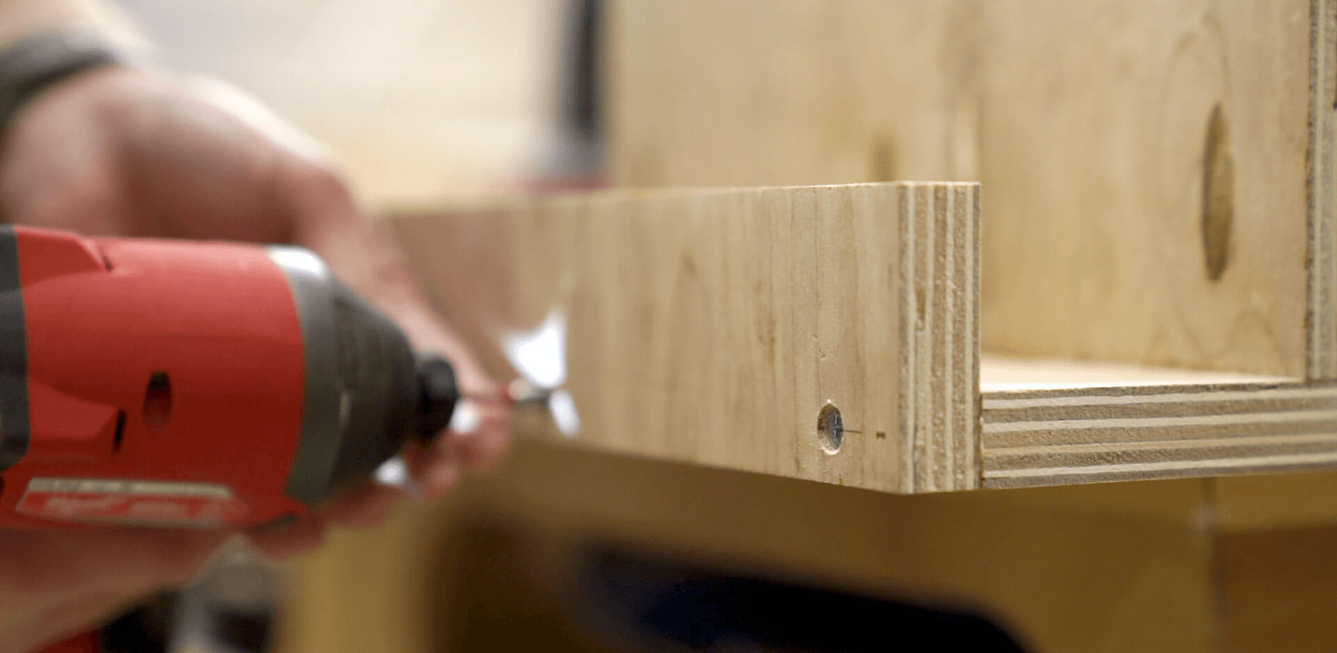 Usually, for my shop projects, I’m more interested in the functionality of the piece and getting it done than getting too bogged down in honing complex skills. That’s why I use pocket screws in this build. Feel free to use other joinery methods such as dados and rabbets instead of pocket screws. Those are very good skills to have and shop projects are a great time to practice.