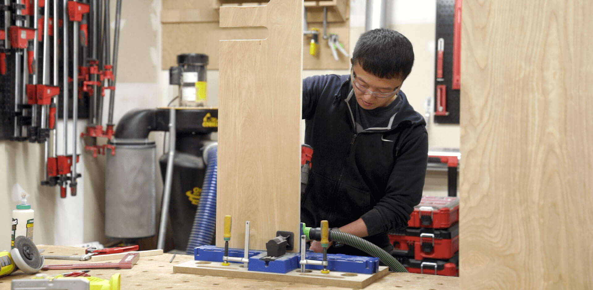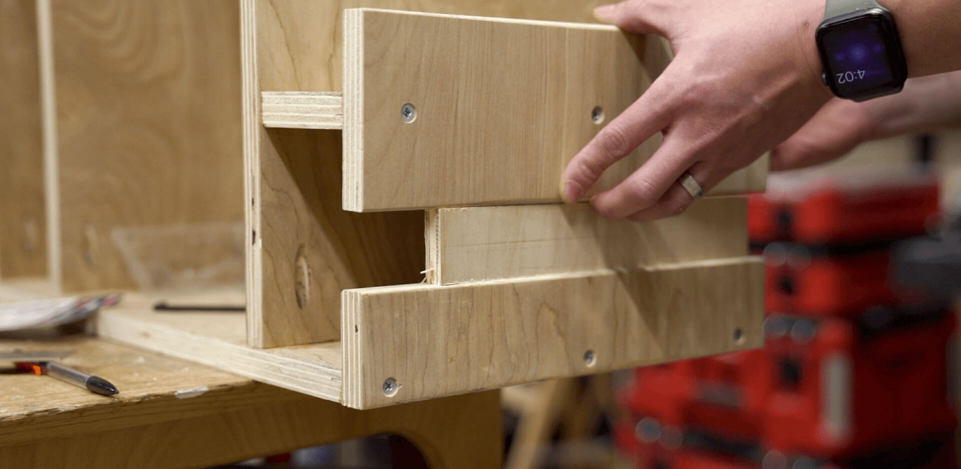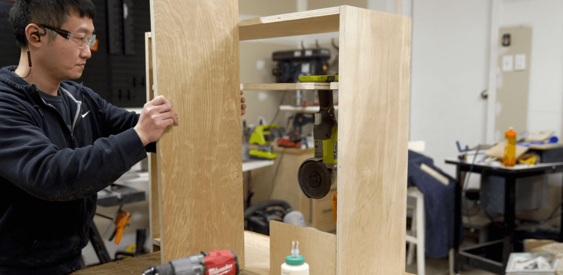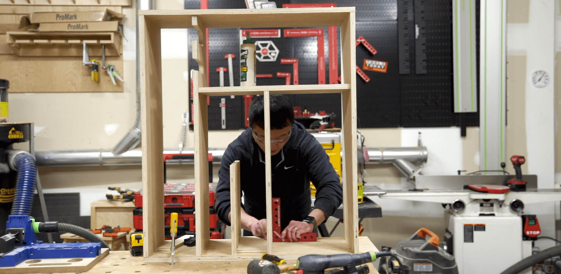 Usually, for my shop projects, I’m more interested in the functionality of the piece and getting it done than getting too bogged down in honing complex skills. That’s why I use pocket screws in this build. Feel free to use other joinery methods such as dados and rabbets instead of pocket screws. Those are very good skills to have and shop projects are a great time to practice.