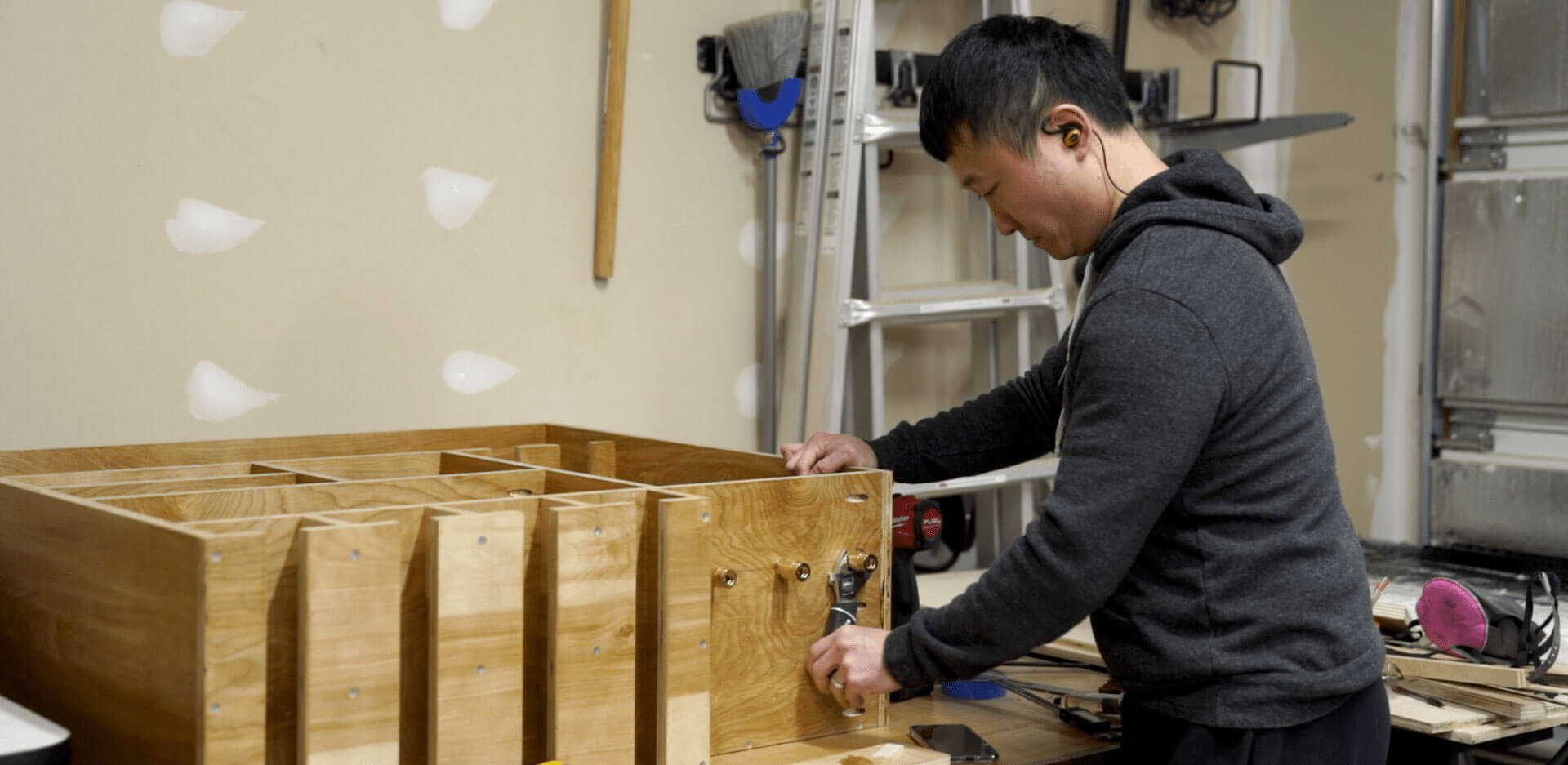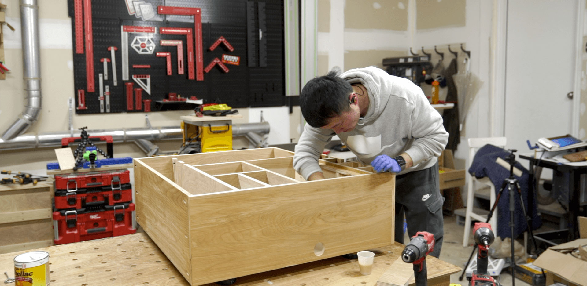 Hey guys, I’m Alex, the guy behind Bevelish Creations. I picked up my first woodworking tool at the end of 2017 so I could build a door for our master bedroom. That’s when I discovered my love for making things with wood. I used to do wedding photography and videography as a side hustle, but decided it didn’t really fit my introverted personality. But when I decided to document the crib I was building for my baby boy, I realized I could combine my two favorite hobbies. I published my first Youtube video at the end of August 2018 and never looked back.