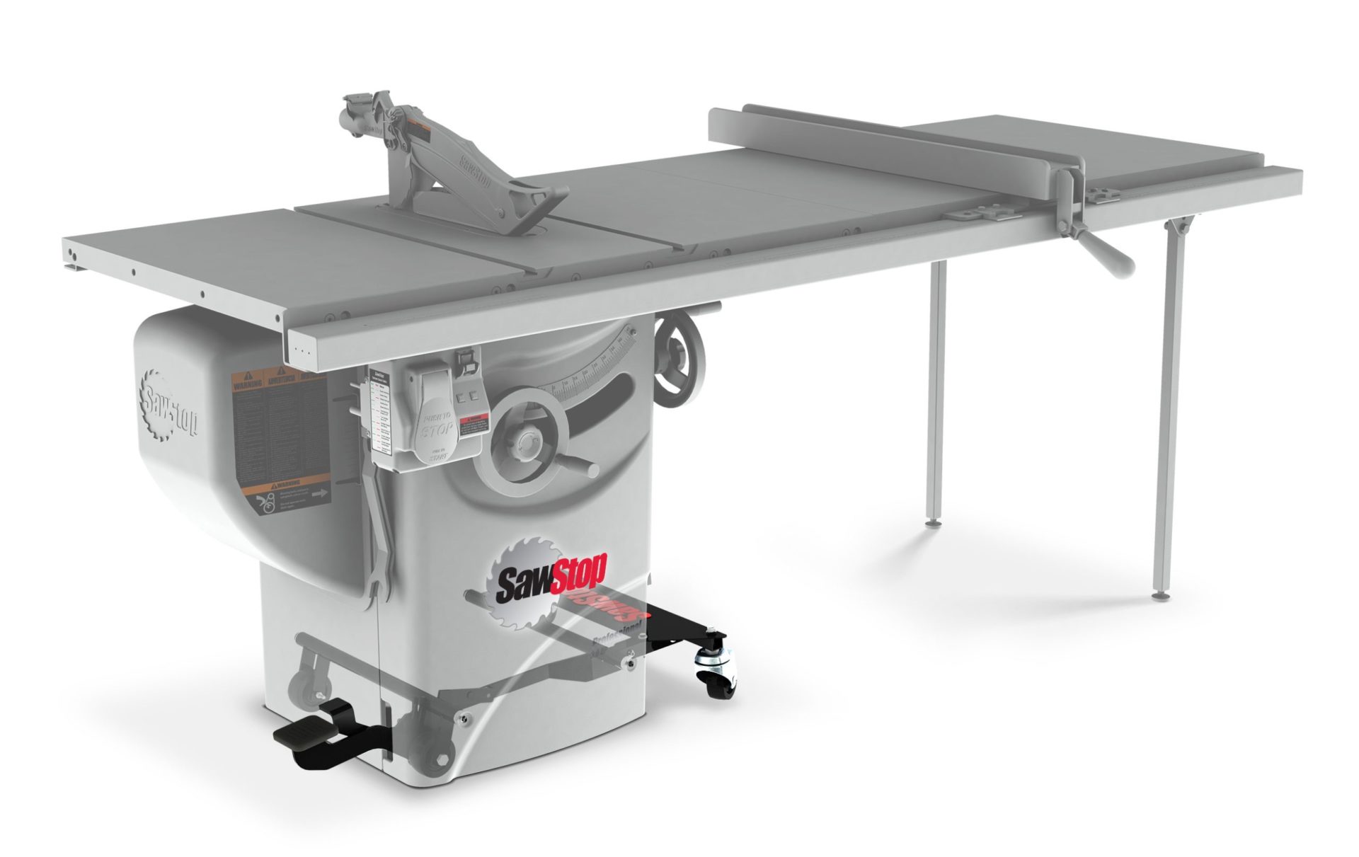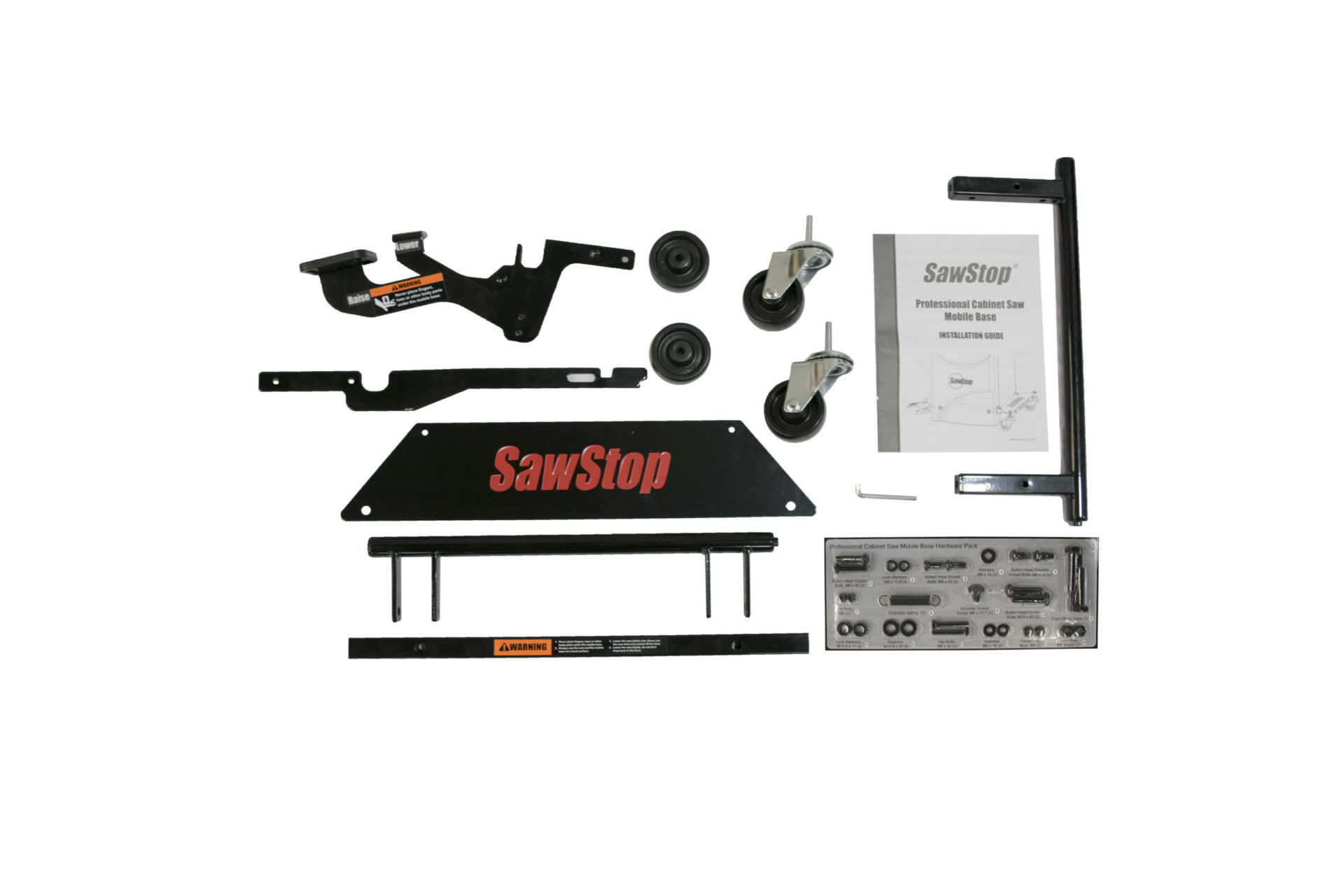MB-PCS-000Easily install this integrated base when your Professional Cabinet Saw is new, or add it on years later. Designed to smoothly move your SawStop Professional Cabinet Saw on any flat surface with the easy step of the lift pedal. The mechanism lifts with one-foot simplicity, and two polyurethane fixed-direction wheels and two 360° casters ensure easy movement. Powder-coated steel ensures durability, and allows the base to support the saw without the need for any extension pieces.