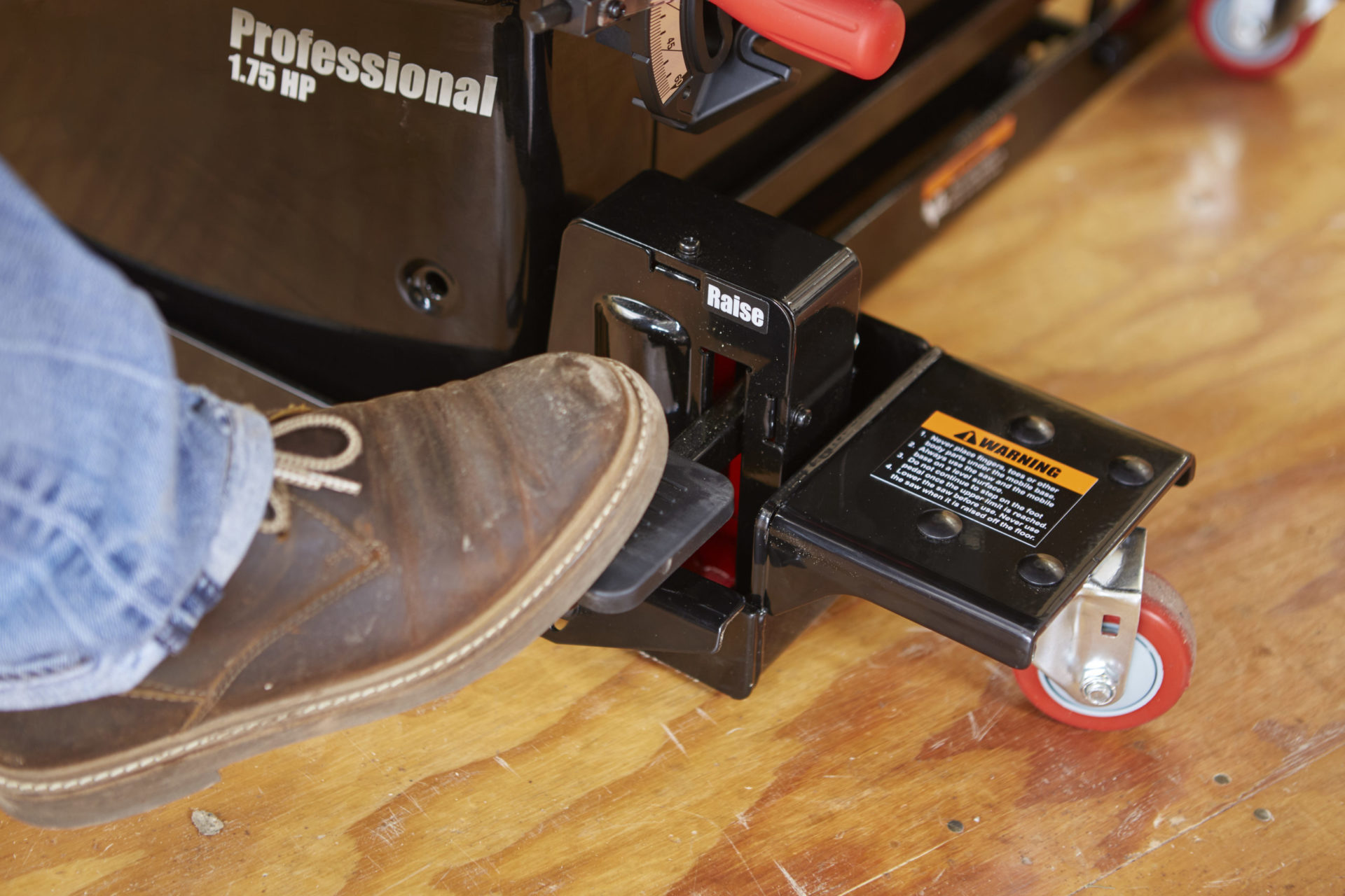 - Four 360° casters allow the saw to easily move in any direction.