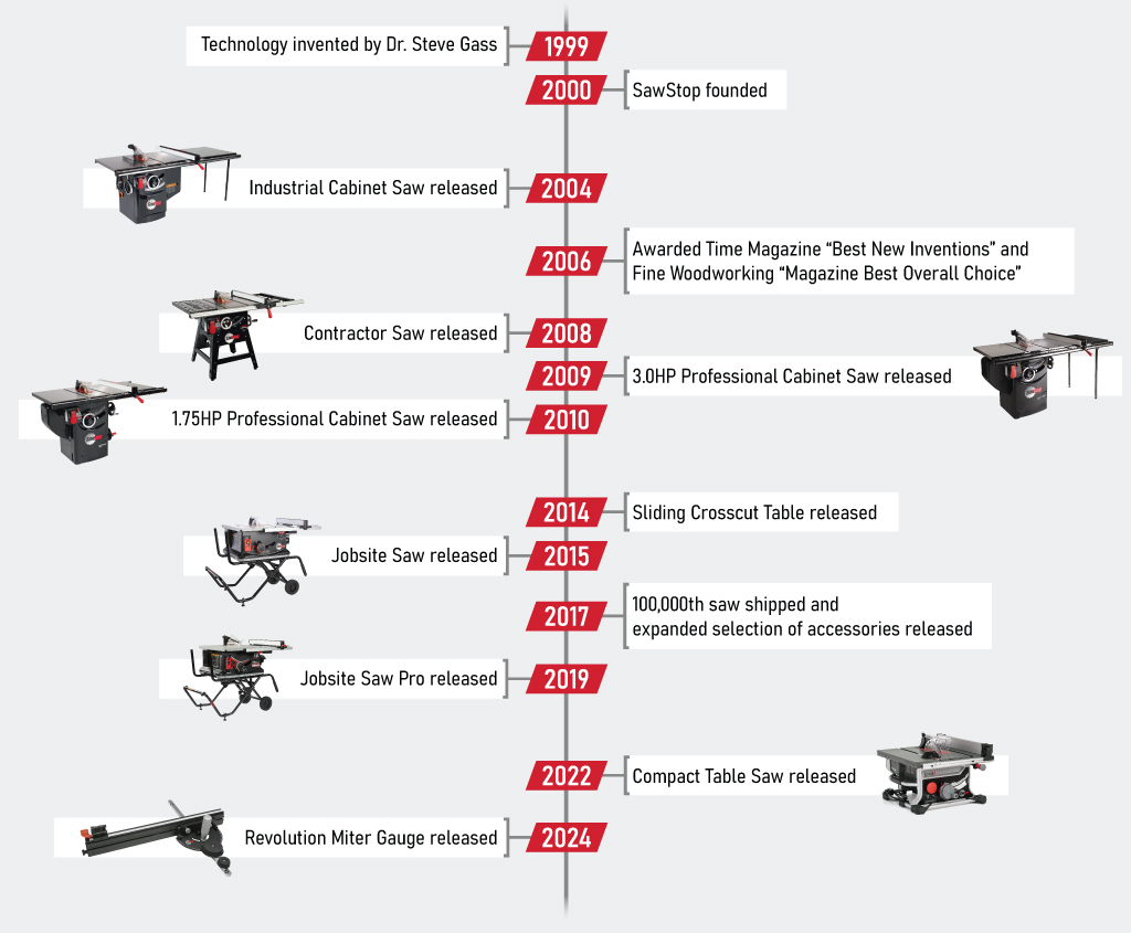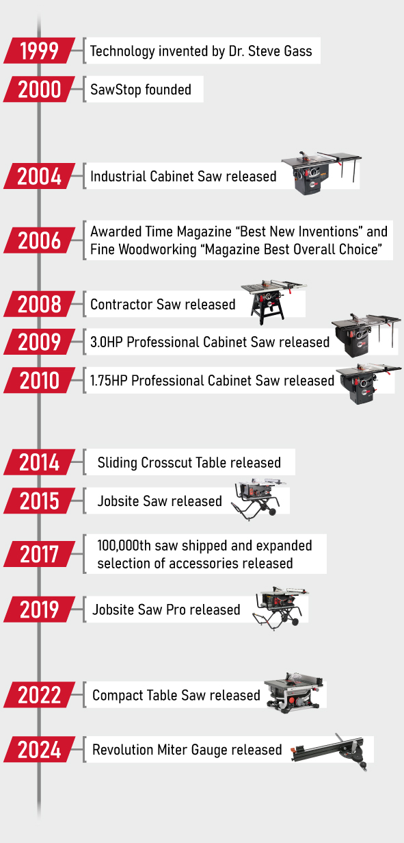 The SawStop story is about a small company with a big idea. The technology was invented by Dr. Steve Gass in 1999, and the business was started by Dr. Gass and three other friends in 2000.